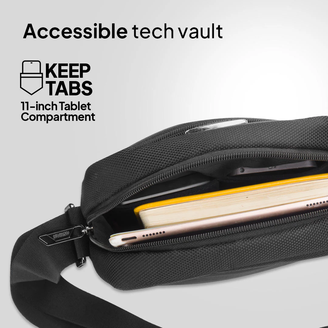 Internal zippered organizers and a front pocket are some of the unmatched features that make Bass an irresistible Shoulder bag. This 900D twill polyester bag features a front pocket with an inner detailed organizer making it a versatile all-day companion. So whether it’s accessories, essentials, or I-pads, everything’
