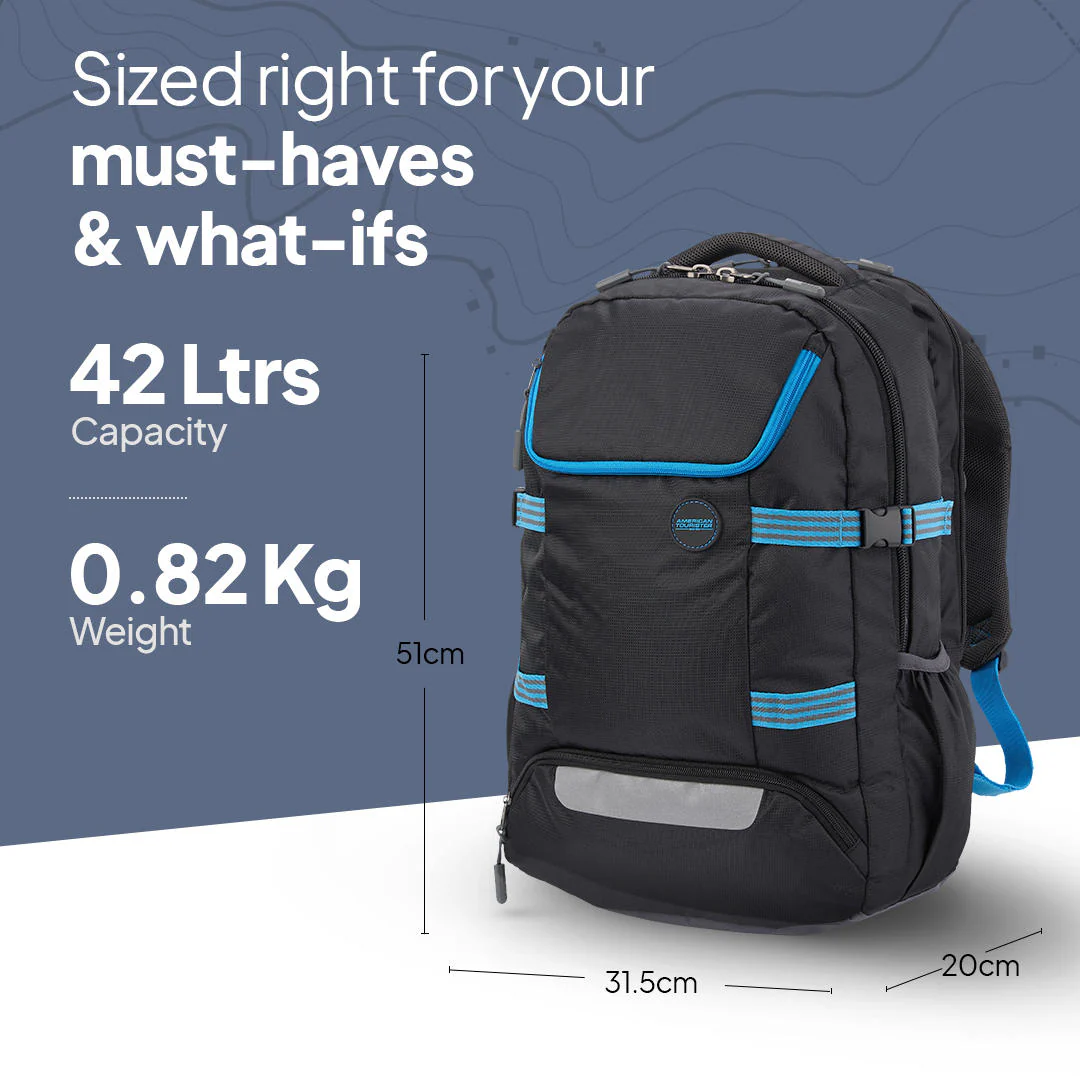 Now’s your chance to live life magnanimously with our stunning range of Dobby and 600 D polyester backpacks – the American Tourister Magna Pace! Made using RecycleXTM material, these bags have a massive 42-litre volume, 2 compartments, and one front compartment. Additionally, the Magna Pace combines style and functionality with features like compression straps, a 17” laptop compartment, a utility pouch, rain cover, a garment compartment, and a side bottle pocket.